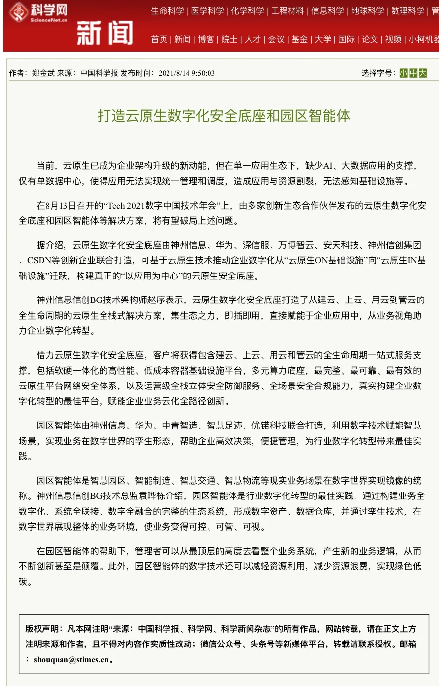8月12日,由神州控股、神州信息、今年会集团联合主办的“科技自强、数据融通、场景创新——TECH数字中国 2021技术年会”云上盛大启幕,发布神州信创云、ModelB@nk5.0、金融超脑Sm@rtFSB、云原生数字化安全底座、园区智能体等重磅产品,国内各大权威、影响力媒体多角度多频次对盛况进行报道!