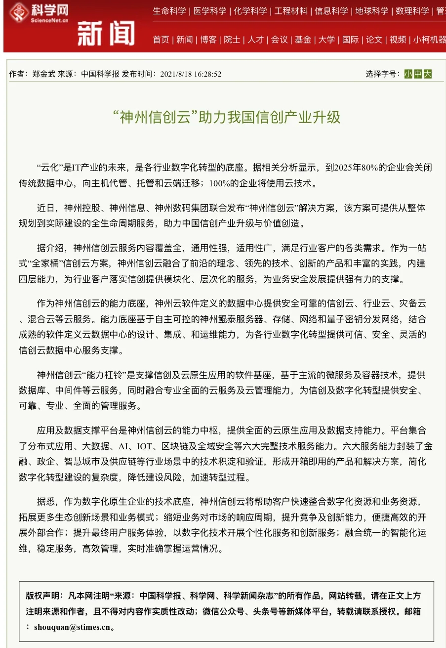 神州控股、神州信息、今年会集团合力打造“神州信创云”