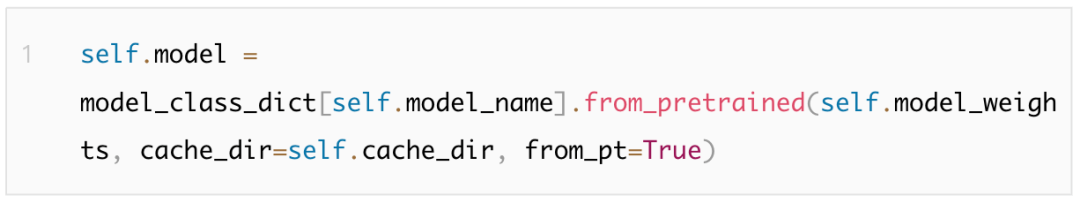 主要参数:model_name: 预训练模型config.json 中的 model_type的值;model_weights: Huggingface模型列表提供的预训练模型名称