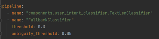 ambiguity_threshold: 模糊意图阈值,如果top 2 的阈值之差小于这个阈值,则设置当前意图为 fallback